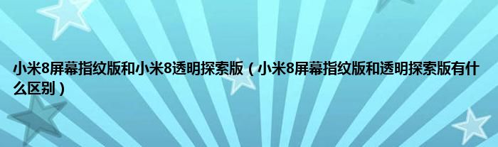大家好,小常来为大家解答以上问题。小米8屏幕指纹版和小米8透明探索版,小米8屏幕指纹版和透明探索版有什么区别很多人还不知道,现在让我们一起来看看吧!