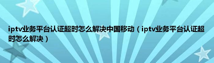 大家好,小常来为大家解答以上问题。iptv业务平台认证超时怎么解决中国移动,iptv业务平台认证超时怎么解决很多人还不知道,现在让我们一起来看看吧!