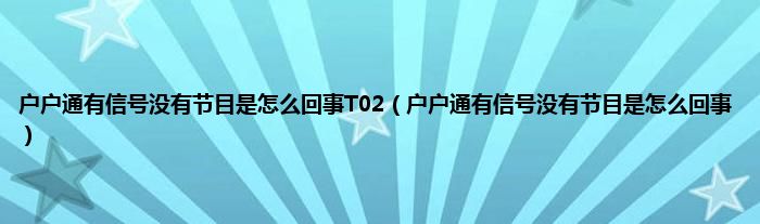 大家好,小常来为大家解答以上问题。户户通有信号没有节目是怎么回事T02,户户通有信号没有节目是怎么回事很多人还不知道,现在让我们一起来看看吧!
