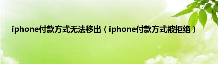 大家好,小常来为大家解答以上问题。iphone付款方式无法移出,iphone付款方式被拒绝很多人还不知道,现在让我们一起来看看吧!