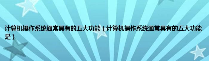 大家好,小常来为大家解答以上问题。计算机操作系统通常具有的五大功能,计算机操作系统通常具有的五大功能是很多人还不知道,现在让我们一起来看看吧!