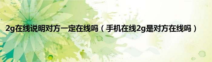 大家好,小常来为大家解答以上问题。2g在线说明对方一定在线吗,手机在线2g是对方在线吗很多人还不知道,现在让我们一起来看看吧!