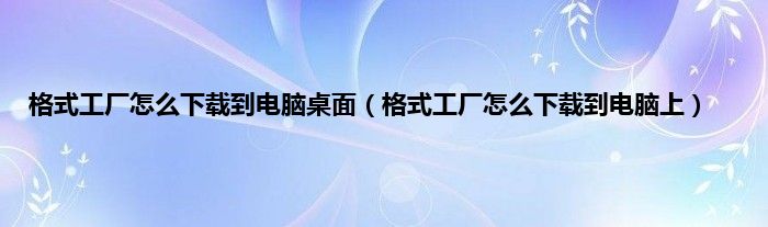 格式工厂怎么下载到电脑桌面(格式工厂怎么下载到电脑上)