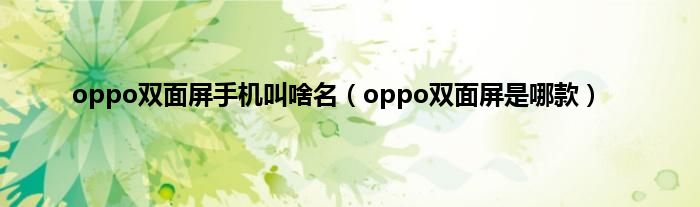 oppo双面屏手机叫啥名(oppo双面屏是哪款)