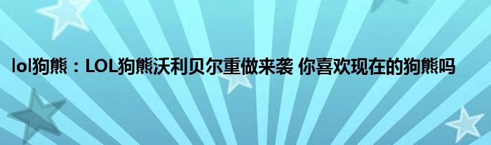 小编今天给各位玩家朋友们带来的是lol狗熊:LOL狗熊沃利贝尔重做来袭,你喜欢现在的狗熊吗,有记得的玩家朋友吗?不记得也没有关系,小编已经帮助大家把lol狗熊:LOL狗熊沃利贝尔重做来袭,你喜欢现在的狗熊吗找了出来,你只需要动动你的小手就可以轻松知道啦,快来瞧一瞧吧。