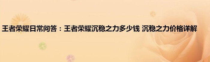 今天来聊聊关于王者荣耀日常问答:王者荣耀沉稳之力多少钱,沉稳之力价格详解的文章,游戏是很多人的选择,但是游戏玩多了也会身心疲惫,现在就为大家来简单介绍下王者荣耀日常问答:王者荣耀沉稳之力多少钱,沉稳之力价格详解,希望对各位小伙伴们有所帮助。