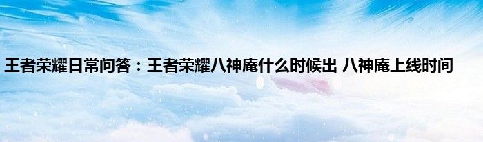 小编今天给各位玩家朋友们带来的是王者荣耀日常问答:王者荣耀八神庵什么时候出,八神庵上线时间,有记得的玩家朋友吗?不记得也没有关系,小编已经帮助大家把王者荣耀日常问答:王者荣耀八神庵什么时候出,八神庵上线时间找了出来,你只需要动动你的小手就可以轻松知道啦,快来瞧一瞧吧。