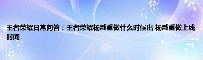 小编今天给各位玩家朋友们带来的是王者荣耀日常问答:王者荣耀杨戬重做什么时候出,杨戬重做上线时间,有记得的玩家朋友吗?不记得也没有关系,小编已经帮助大家把王者荣耀日常问答:王者荣耀杨戬重做什么时候出,杨戬重做上线时间找了出来,你只需要动动你的小手就可以轻松知道啦,快来瞧一瞧吧。