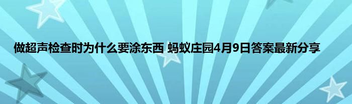 蚂蚁庄园小课堂当中玩家可以得到每日的饲料奖励,但是玩家必须要回答每天问题的正确的答案才行,4月9日小课堂最新的问题就是做超声检查时为什么要涂东西?很多玩家都不知道这道题目的答案是什么了,那下面就让小编给玩家们带来4月9日小课堂答案的介绍,一起看下吧。