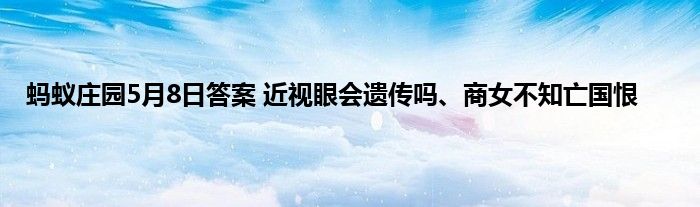 2021年5月8日蚂蚁庄园答案是什么?5月8日蚂蚁庄园的答案很多的玩家都不清晰,这两个问题有:“商女不知亡国恨,隔江犹唱后庭花”用的是哪个朝代的典故?近视眼会遗传吗?下面小编给大家介绍一下具体的答案和解析,一起来看看吧。