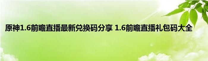 原神1.6前瞻直播马上开启,直播开始时会放出很多的兑换码,用来兑换游戏中的资源,这些直播放出的兑换码都有期限,过时了就没有了,很多玩家在问1.6前瞻直播的兑换码是什么,下面就来跟着小编一起来看看详细的内容。