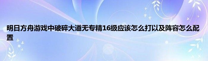 明日方舟破碎大道无专精16级打法攻略
