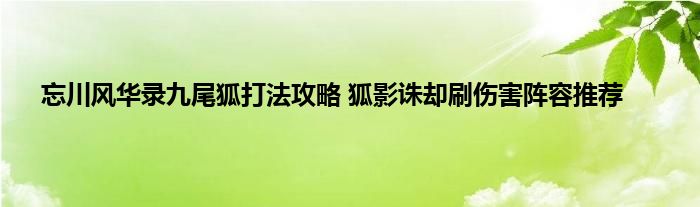 以上就是小编为大家带来的忘川风华录狐影诛却刷伤害阵容攻略,希望对各位玩家有所帮助。