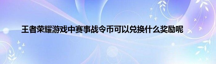今天来聊聊关于王者荣耀游戏中赛事战令币可以兑换什么奖励呢的文章,游戏是很多人的选择,但是游戏玩多了也会身心疲惫,现在就为大家来简单介绍下王者荣耀游戏中赛事战令币可以兑换什么奖励呢,希望对各位小伙伴们有所帮助。