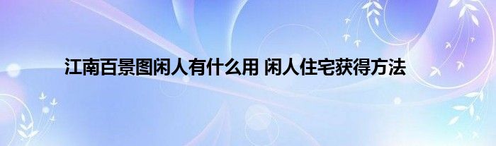 江南百景图闲人住宅获取途径