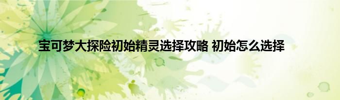 以上就是宝可梦大探险初始宝可梦推举的内容,希翼对大家有所帮助。