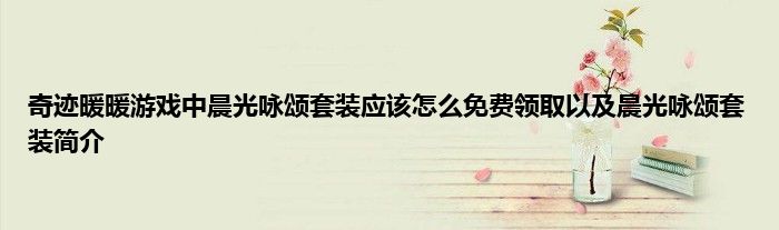 以上就是奇迹暖暖游戏中晨光咏颂套装应该怎么免费领取以及晨光咏颂套装简介的推荐,相信通过奇迹暖暖游戏中晨光咏颂套装应该怎么免费领取以及晨光咏颂套装简介这篇文章能帮到你,也欢迎对游戏很感兴趣小伙伴们一起来探讨。