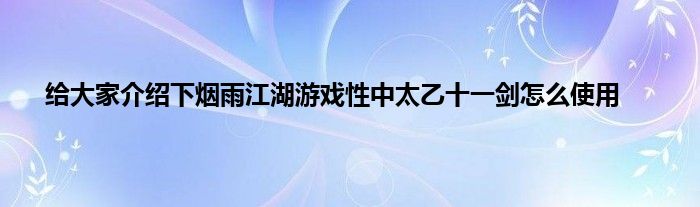 今天弟哥来聊聊一篇关于烟雨江湖游戏性中太乙十一剑怎么使用的文章,游戏是很多人的选择,但是游戏玩多了也会身心疲惫,现在就为大家来简单介绍下烟雨江湖游戏性中太乙十一剑怎么使用,希望对各位小伙伴们有所帮助。