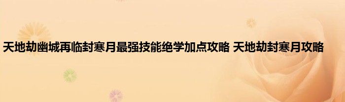 《天地劫:幽城再临》封寒月技能绝学加点攻略