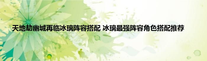 天地劫幽城再临冰璃阵容搭配如何选择?作为天地劫游戏中的招牌角色,冰璃凭借强力的属性成为最强阵容的核心,冰璃阵容中哪些角色搭配比较厉害?这里就为大家带来天地劫幽城再临冰璃最强阵容角色搭配推荐。