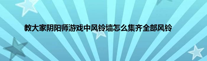 今天弟哥来聊聊一篇关于阴阳师游戏中风铃墙怎么集齐全部风铃的文章,游戏是很多人的选择,但是游戏玩多了也会身心疲惫,现在就为大家来简单介绍下阴阳师游戏中风铃墙怎么集齐全部风铃,希望对各位小伙伴们有所帮助。