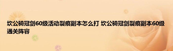 坎公骑冠剑60级活动裂痕副本怎么打?坎公骑冠剑游戏已经开启到了60级的活动副本,裂痕副本整体的打法还是比较难的,因此需要一些不同的打法。可能一些玩家不清晰具体要怎么打,下面就带来了副本打法分享,希翼大家喜欢。