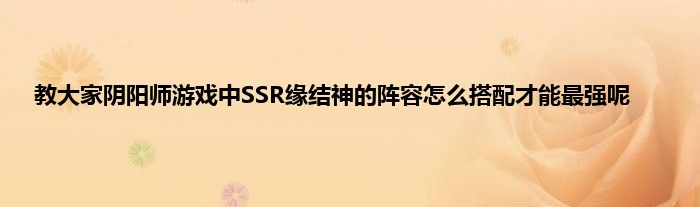 今天弟哥来聊聊一篇关于阴阳师游戏中SSR缘结神的阵容怎么搭配才能最强呢的文章,游戏是很多人的选择,但是游戏玩多了也会身心疲惫,现在就为大家来简单介绍下阴阳师游戏中SSR缘结神的阵容怎么搭配才能最强呢,希望对各位小伙伴们有所帮助。