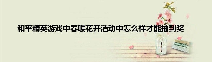 以上就是和平精英游戏中春暖花开活动中怎么样才能抽到奖的推荐,相信通过和平精英游戏中春暖花开活动中怎么样才能抽到奖这篇文章能帮到你,也欢迎对游戏很感兴趣小伙伴们一起来探讨。