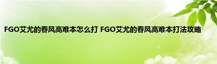 FGO艾尤的春风高难本怎么打?FGO新活动最近已经开启了,这次的活动一样是有高难副本的,新的高难本对不少玩家来说都是比较难打的。这次的高难也需要一些特殊打法和针对性的角色,下面就一起来看看具体的攻略吧。