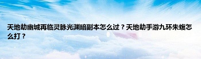 天地劫幽城再临中副本是玩家们的主要升级方式之一,在天地劫手游中九环朱蝮是游戏中日常副本之一,难度很大,那么其中灵脉光渊暗副本中怎么过,boss九环朱蝮怎么打,什么阵容好,和蚕豆君一起来看看吧。