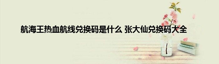 航海王热血航线张大仙兑换码能帮助免费兑换出丰厚的奖励,很多主播都有其专属的兑换码,前段时间王者荣耀的主播张大仙在粉丝群里曝光了其专属的兑换码,因此很多玩家想知道航海王热血航线张大仙兑换码是什么?蚕豆小编为您带来航海王热血航线张大仙兑换码大全。