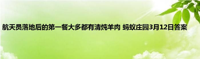 航天员落地后的第一餐,大多都有清炖羊肉,这是因为?蚂蚁庄园3月12日的问题正式公布,如果回答正确就可以领取奖励,可能很多的玩家还不太清楚具体的答案是什么,为了让大家都能领取到小鸡饲料,下面就是蚂蚁庄园小课堂3月12日的答案和答案解析。