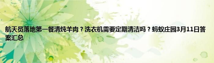 蚂蚁庄园每日会有一些问题给到玩家,答对问题就会有奖励,蚂蚁庄园3月12日的问题分别是:航天员落地后的第一餐,大多都是“清炖羊肉”,这是因为?家中经常使用的洗衣机,需要定期清洁吗?下面蚕豆君给大家带来问题的解答,一起看看吧。