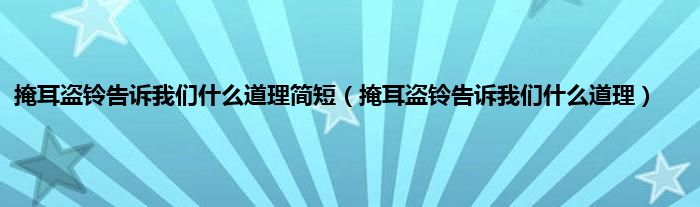 大家好,小科来为大家解答以上问题。掩耳盗铃告诉我们什么道理简短,掩耳盗铃告诉我们什么道理很多人还不知道,现在让我们一起来看看吧!