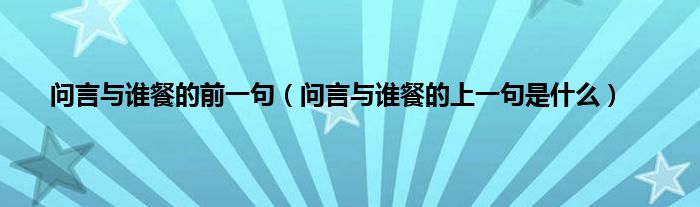 大家好,小科来为大家解答以上问题。问言与谁餐的前一句,问言与谁餐的上一句是什么很多人还不知道,现在让我们一起来看看吧!