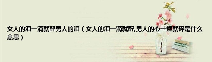 大家好,小科来为大家解答以上问题。女人的泪一滴就醉男人的泪,女人的泪一滴就醉,男人的心一揉就碎是什么意思很多人还不知道,现在让我们一起来看看吧!