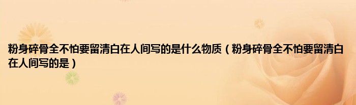 大家好,小科来为大家解答以上问题。粉身碎骨全不怕要留清白在人间写的是什么物质,粉身碎骨全不怕要留清白在人间写的是很多人还不知道,现在让我们一起来看看吧!