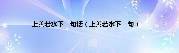 大家好,小科来为大家解答以上问题。上善若水下一句话,上善若水下一句很多人还不知道,现在让我们一起来看看吧!