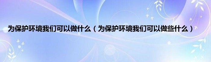 大家好,小科来为大家解答以上问题。为保护环境我们可以做什么,为保护环境我们可以做些什么很多人还不知道,现在让我们一起来看看吧!