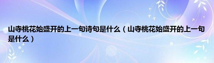 大家好,小科来为大家解答以上问题。山寺桃花始盛开的上一句诗句是什么,山寺桃花始盛开的上一句是什么很多人还不知道,现在让我们一起来看看吧!