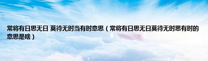 大家好,小科来为大家解答以上问题。常将有日思无日 莫待无时当有时意思,常将有日思无日莫待无时思有时的意思是啥很多人还不知道,现在让我们一起来看看吧!