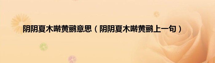 大家好,小科来为大家解答以上问题。阴阴夏木啭黄鹂意思,阴阴夏木啭黄鹂上一句很多人还不知道,现在让我们一起来看看吧!