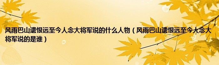 大家好,小科来为大家解答以上问题。风雨巴山遗恨远至今人念大将军说的什么人物,风雨巴山遗恨远至今人念大将军说的是谁很多人还不知道,现在让我们一起来看看吧!