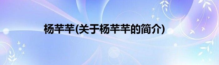 杨芊芊(关于杨芊芊的简介)
