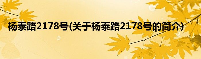 本文关于杨泰路2178号的简介就讲解完毕,希望对大家有所帮助。