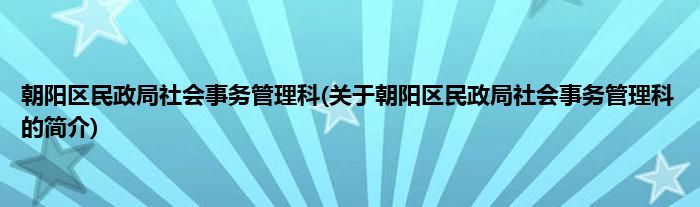 大家好,朝阳区民政局社会事务管理科,关于朝阳区民政局社会事务管理科的简介很多人还不知道,现在让我们一起来看看吧!