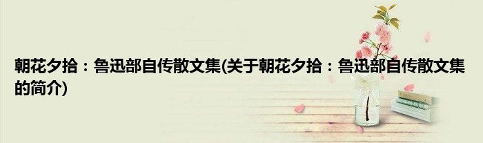 本文关于朝花夕拾:鲁迅部自传散文集的简介就讲解完毕,希望对大家有所帮助。