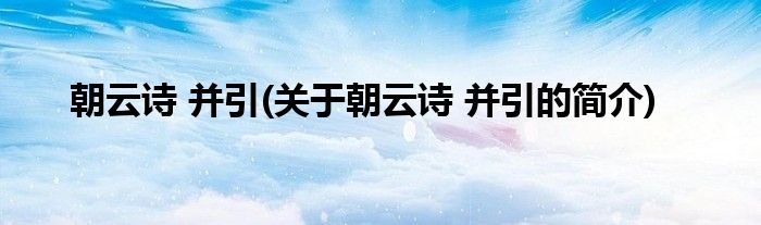 本文关于朝云诗,并引的简介就讲解完毕,希望对大家有所帮助。
