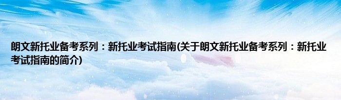 大家好,朗文新托业备考系列:新托业考试指南,关于朗文新托业备考系列:新托业考试指南的简介很多人还不知道,现在让我们一起来看看吧!
