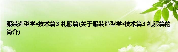 大家好,服装造型学·技术篇3 礼服篇,关于服装造型学·技术篇3 礼服篇的简介很多人还不知道,现在让我们一起来看看吧!